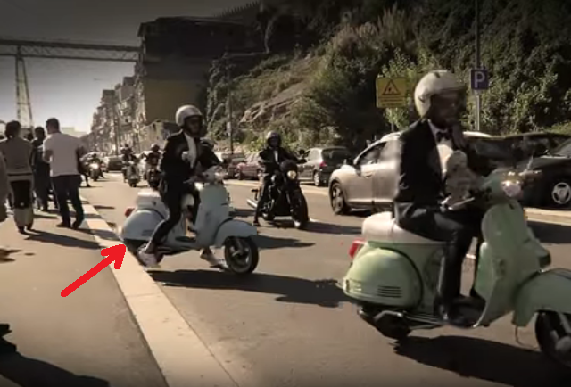 Porque o colega olhou para trás para tentar descobrir a causa do barulho. Se querem descer um passeio de Vespa têm que o fazer para a frente ou para a esquerda; para a direita vai bater o motor. Se tiverem uma Vespa antiga, os cuidados deverão ser redobrados pois a extremidade por baixo da matrícula é ainda mais baixa e sólida que nas PX/LML e baterá em passeios de altura média, com garantia acrescida de tal em caso de existência de pendura. A Horta educa e molda as futuras gerações de scooteristas clássicos nacionais!