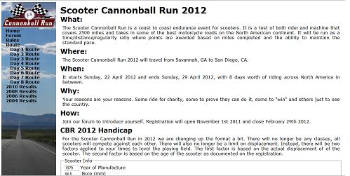 ... e acabamos nos States, onde já saíram os novos regulamentos de handicap para o Cannonball de 2012. (o sistema Bola de Canhão é mais macho, no entanto)